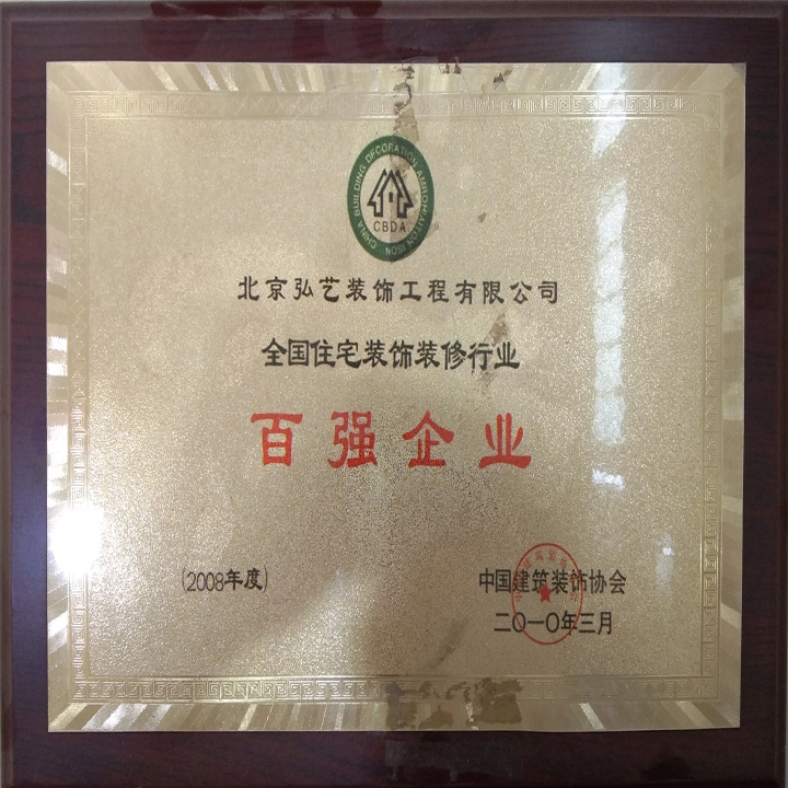 企業(yè)榮譽(yù)-全國(guó)住宅裝飾裝修百?gòu)?qiáng)企業(yè)