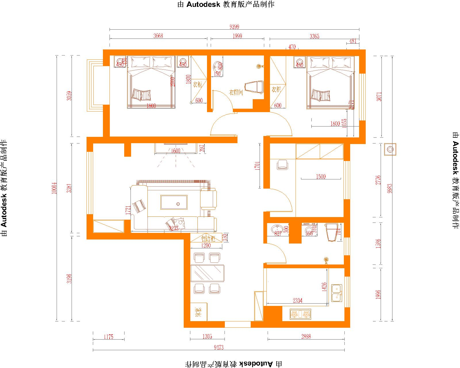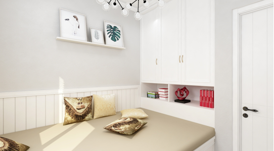 3、 此戶型次臥室平米比較小,所以后期再規(guī)劃設(shè)計上面可以采用整體全屋定制形式