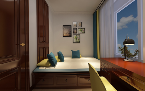 2:主臥室的墻面顏色以白色為主和家具深顏色形成互補反差,由于空間不算小,在考慮多個方案后,感覺還是把衣柜放到了床對面的那面墻,這樣的話不僅空間布局合理,而且滿足的功能更多,能增加更多的儲物空間,原有飄窗去掉做成休閑與儲物一體的儲藏。
