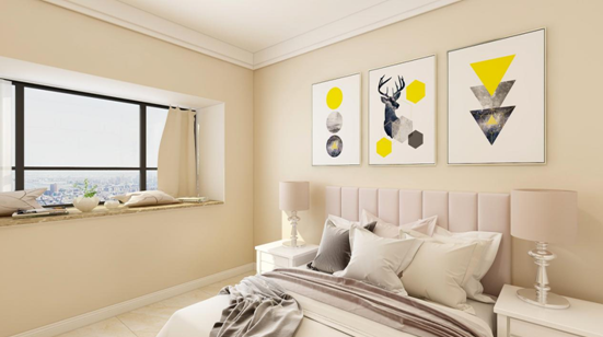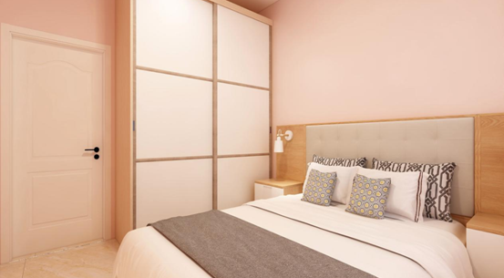 主臥室以溫馨舒適為主,素雅大方淺色墻面配以淺色軟包床頭家具足以體現(xiàn)主人的品位,在設(shè)計(jì)上床頭兩側(cè)的床頭柜放了臺(tái)燈,方便主任夜間讀書,為房間注入了溫馨自然的格調(diào),隨時(shí)都能保持一份心靈的寧靜,回歸內(nèi)心深處。