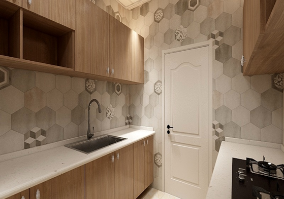 整體櫥柜實(shí)用為主,地面、墻面與頂面都以淺色調(diào)為主,搭配上淺色櫥柜門板深色臺(tái)面,顯得穩(wěn)重大氣。由于空間比較局促,水盆和灶具都選擇小巧型的,增強(qiáng)空間利用率,并向上方也做了櫥柜,并搭配小型儲(chǔ)物柜,可以儲(chǔ)藏生活用品。