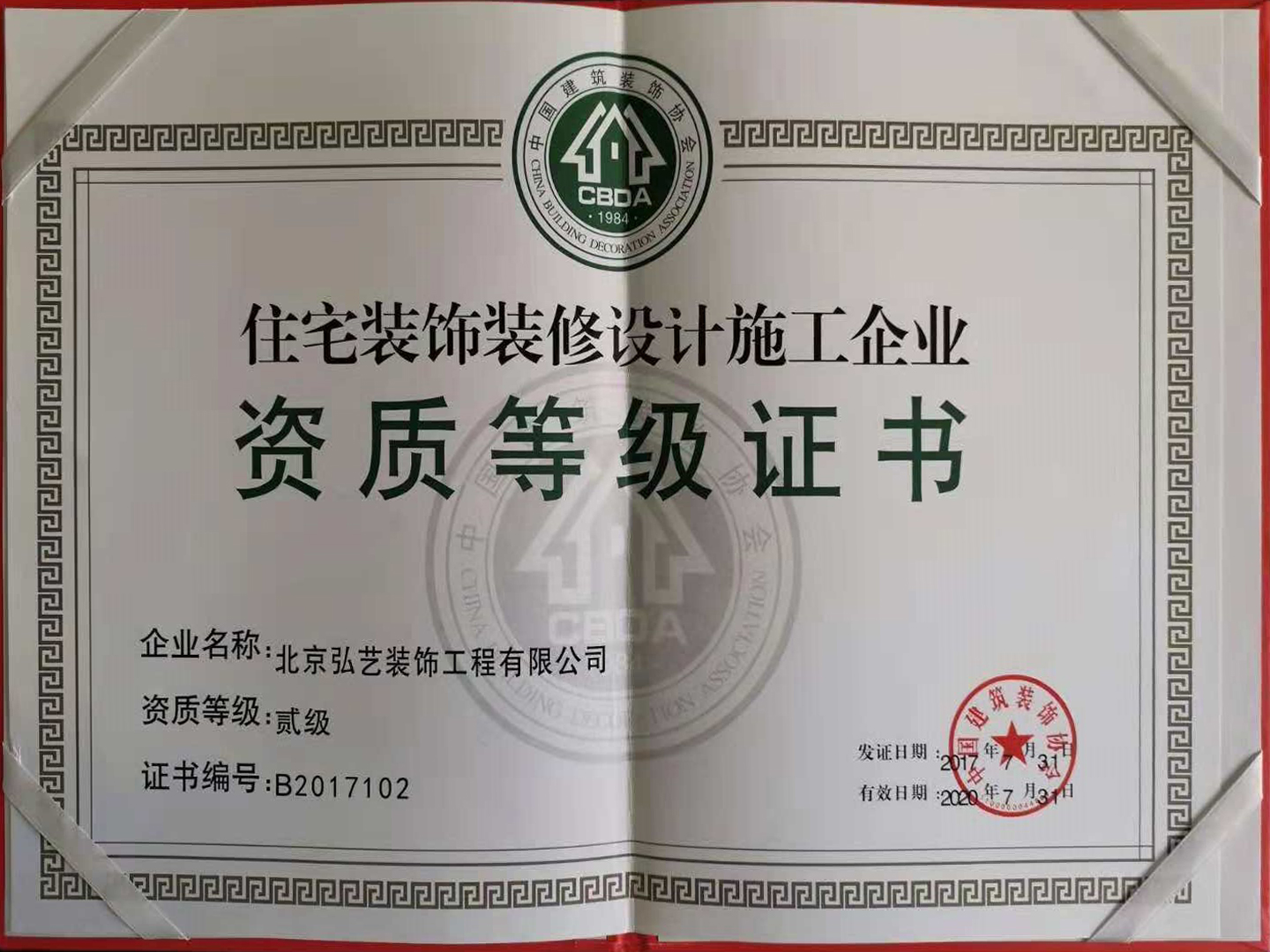 住宅裝飾裝修設(shè)計(jì)施工企業(yè)二級資質(zhì)證書