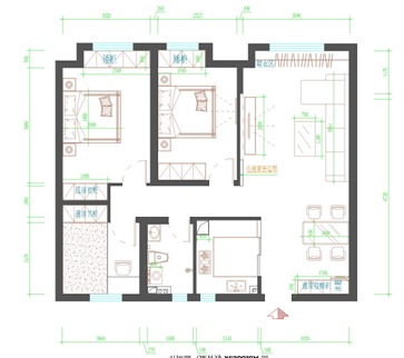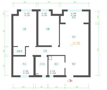 2、 此戶型沒有陽臺,后期應(yīng)該從客廳位置規(guī)劃出一個陽臺