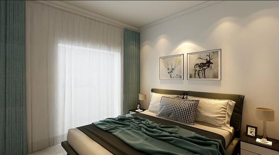 臥室以溫馨舒適為主,顏色不宜太暗,要避免使用大面積深色以防止悶重的感覺。所以在臥室的配色上用淺色調(diào)來進行調(diào)和。床頭上配簡單裝飾畫來點綴,離開喧鬧的城市,回到自己溫馨的港灣,把工作中的一切煩惱的拋之腦后,靜靜享受屬于自己的這個時光。
