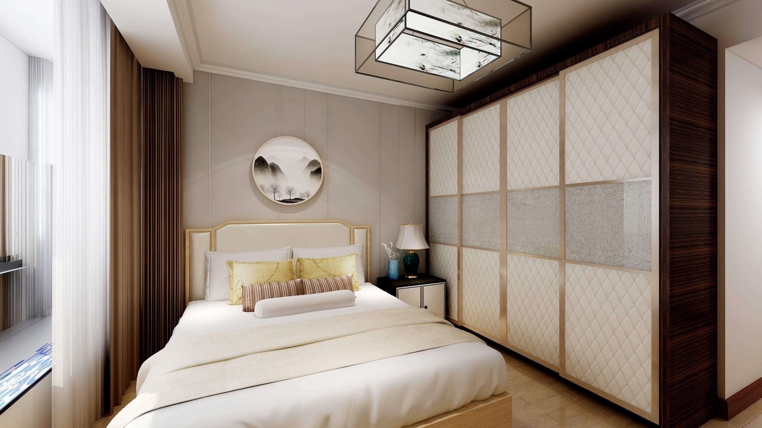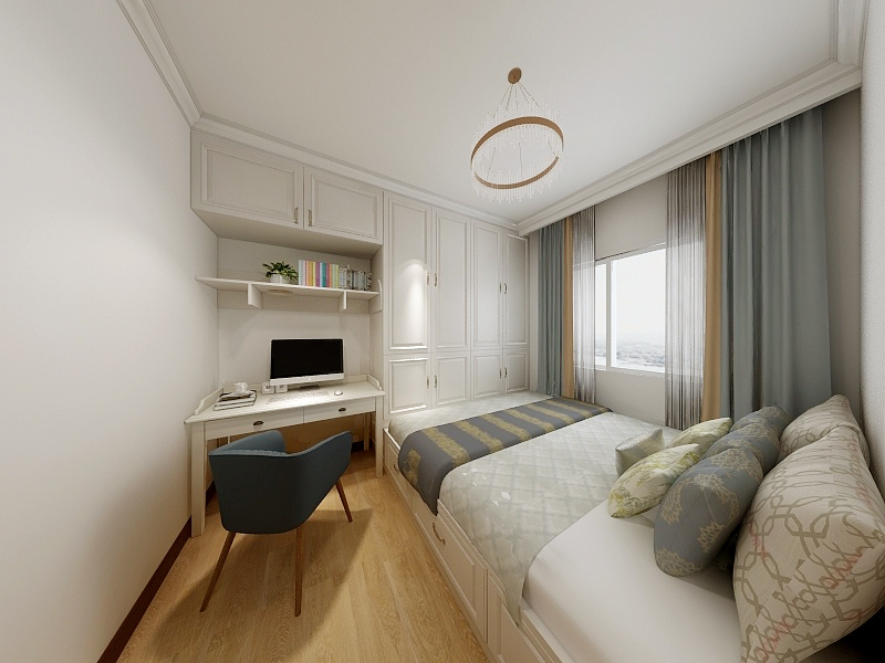 臨窗而坐,紗簾半合。安享屬于自己的時光,整個臥室區(qū)域素雅大方,整體以暖色調(diào)為主,柔和的色彩使人隨意、放松的心情駐留在房間里,使得緊湊的空間具有視覺延伸和放大空間的效果。床頭燈總是在需要它的時候暖暖的陪伴在主人的身邊。