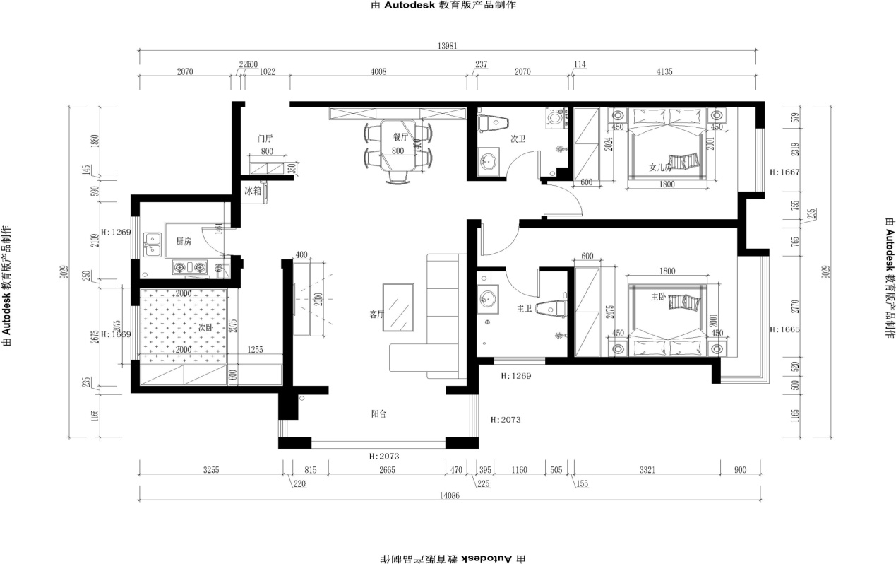 房子是口人居住,業(yè)主要求造型簡潔,整體色彩明亮,兩個孩子年齡差異有些大,更多是偏向小女兒和他們一起居住,將來子如有需要,可能改造成婚房現(xiàn)階段要求簡潔大方,家庭人數(shù)也對空間要求增加
