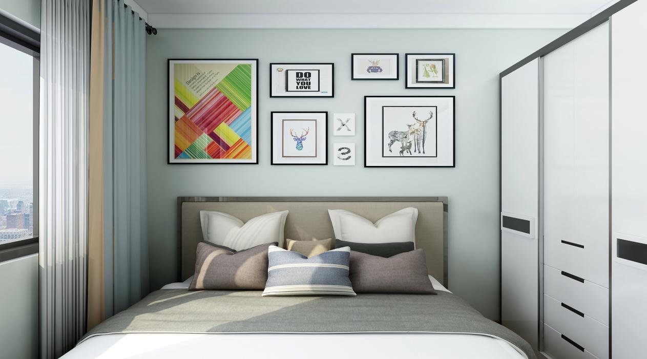北面的小臥室是客房的設(shè)置,將來有了小寶寶以后,這里也會(huì)作為兒童房使用,所以床頭的裝飾畫就換成了一面照片墻,將來能記載寶寶的成長(zhǎng),和一家人每一滴的幸福時(shí)光。