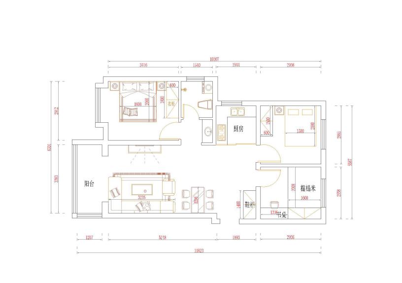 1. 該戶型不足的地方是廚房和衛(wèi)生間面積比較小