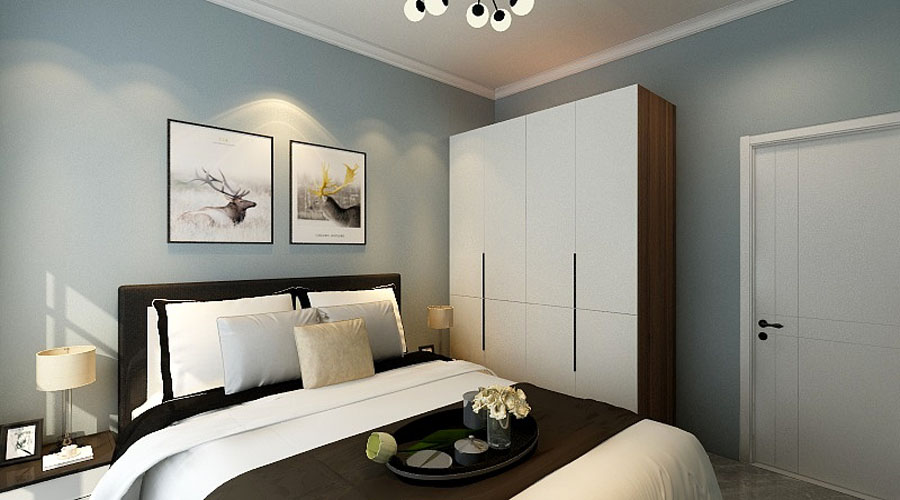 臥室以溫馨舒適為主,顏色不宜太暗,要避免使用大面積深色以防止悶重的感覺。所以在臥室的配色上用淺色調(diào)來進行調(diào)和。床頭上配簡單裝飾畫來點綴,離開喧鬧的城市,回到自己溫馨的港灣,把工作中的一切煩惱的拋之腦后,靜靜享受屬于自己的這個時光。