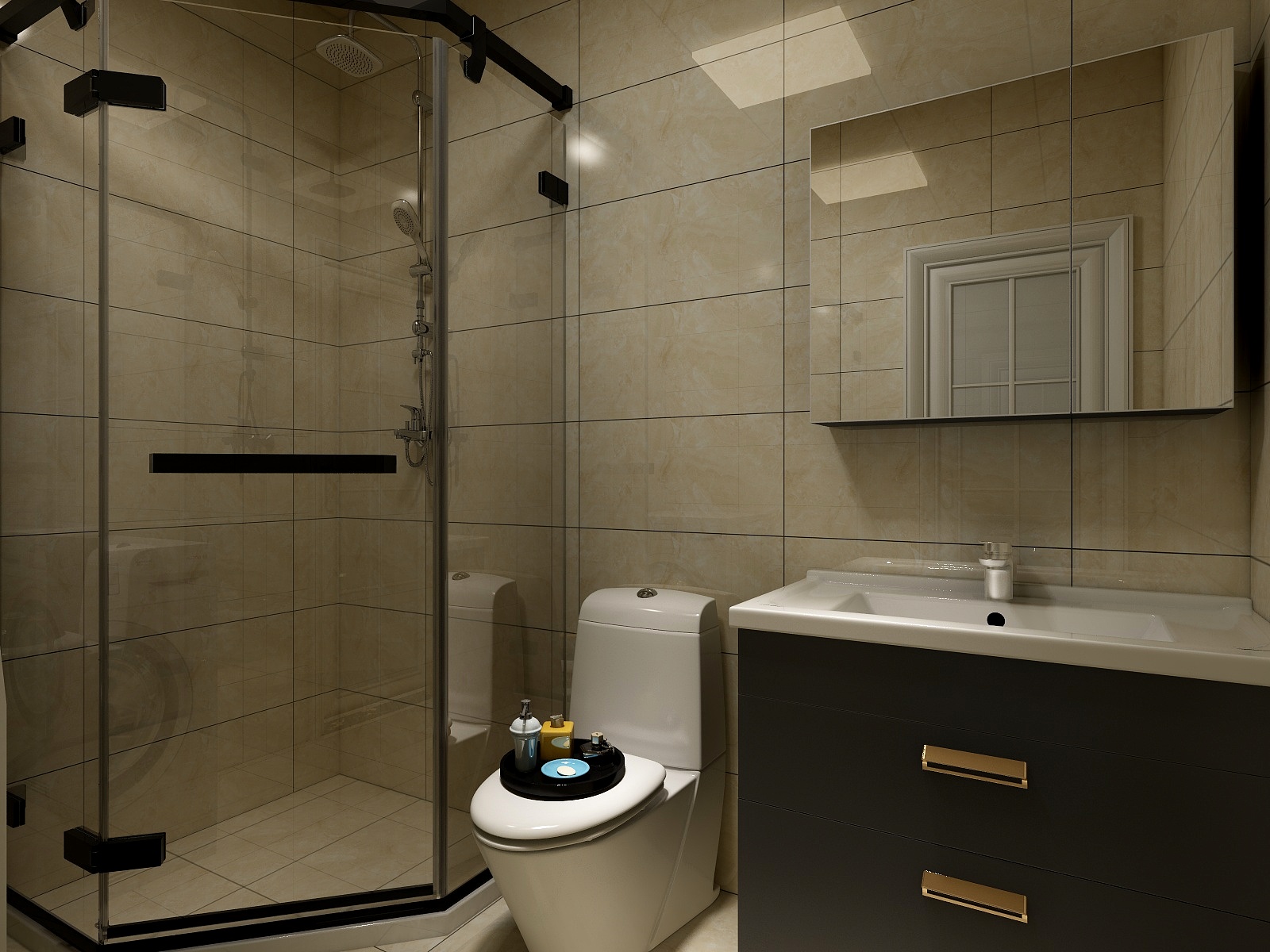 小衛(wèi)浴間選用了深淺搭配的色調(diào),讓整個(gè)空間明朗、整潔。衛(wèi)生間設(shè)計(jì)應(yīng)該以實(shí)用大方、安全方便、易于清潔、美觀簡(jiǎn)潔為主,衛(wèi)生間會(huì)長(zhǎng)期和水打交道,因此內(nèi)部裝修應(yīng)該做好防水措施,浴室的墻壁和地面應(yīng)該選擇防水防潮耐腐蝕的優(yōu)質(zhì)材料,整體應(yīng)該給人一種明亮簡(jiǎn)潔的感覺(jué),避免過(guò)度的繁瑣設(shè)計(jì),給人一種累贅感。衛(wèi)生間的色彩選擇具有清潔感的冷色調(diào),并與同色調(diào)的搭配,低彩度、高明度的色彩為佳。對(duì)于潔具,追求合理、合適的潔具。浴室裝飾要講究實(shí)用,考慮衛(wèi)生用具和裝飾的整體效果。