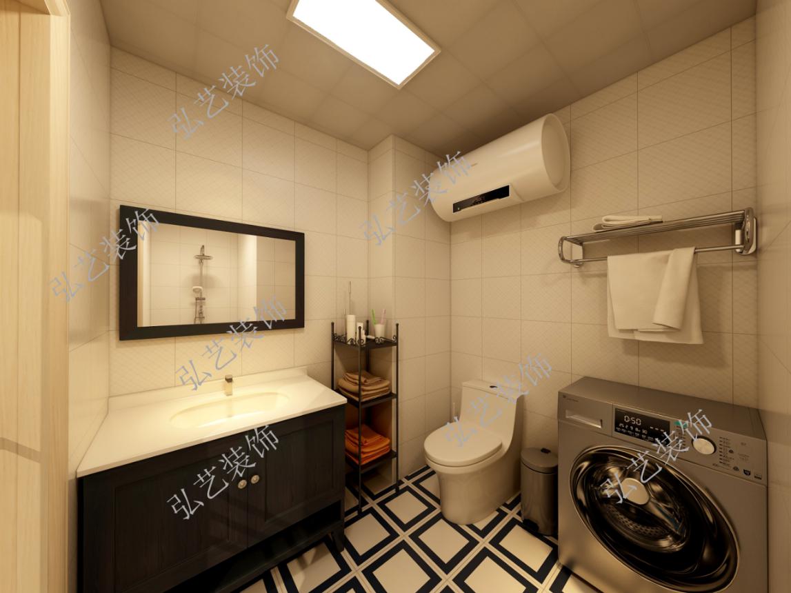 衛(wèi)生間采用米黃色的墻地磚,因為這個磚也是淺色系,鋪完之后整體很高檔,因為衛(wèi)生間本身就是要保持干凈的空間,建議是采用色調(diào)比較淺的瓷磚,這樣的話整體效果較好而且好打理,衛(wèi)生間是接近正方形,所以洗衣機(jī)與浴室柜對面放也沒有問題,空間利用更合理,淺色版的墻磚,層次感更強(qiáng)。