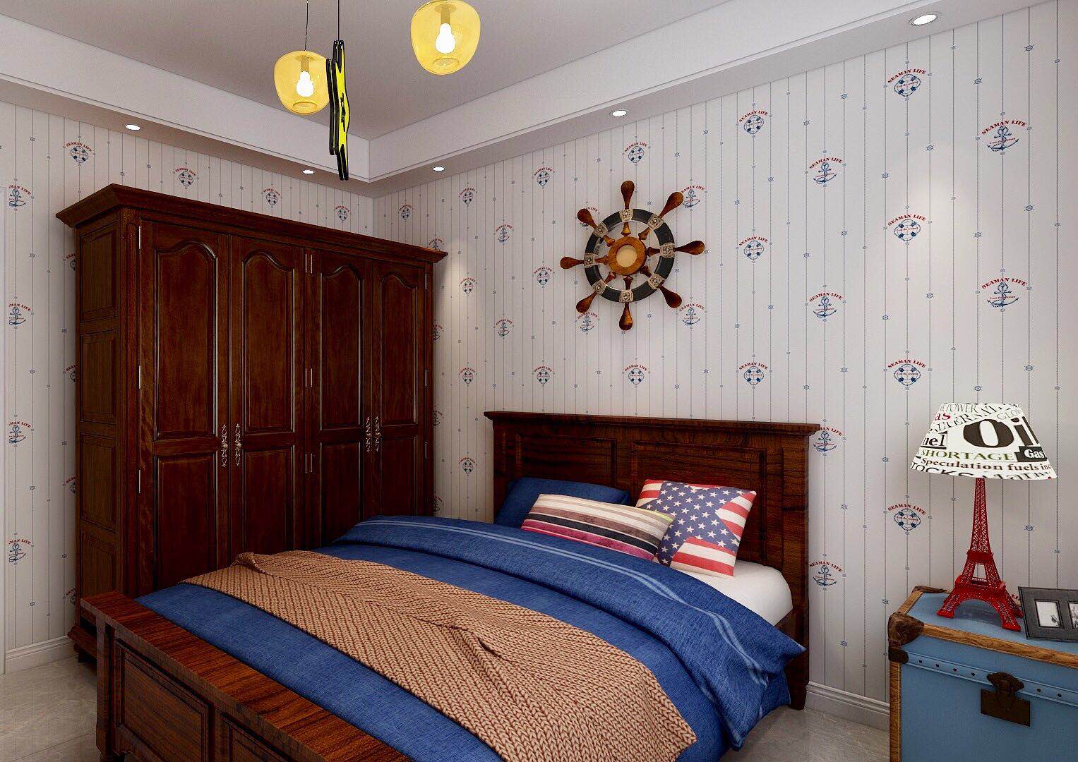 次臥室為兒童房,主人孩子現(xiàn)在還比較小,整體色調(diào)以藍(lán)色為主,整體清新自然,次臥選用了一個(gè)非常有趣的壁紙運(yùn)用了很多的復(fù)古元素,打造了一個(gè)溫馨且有層次感的臥室空間,整體沒有過多的復(fù)雜裝飾,為業(yè)主提供的簡單的睡眠空間。