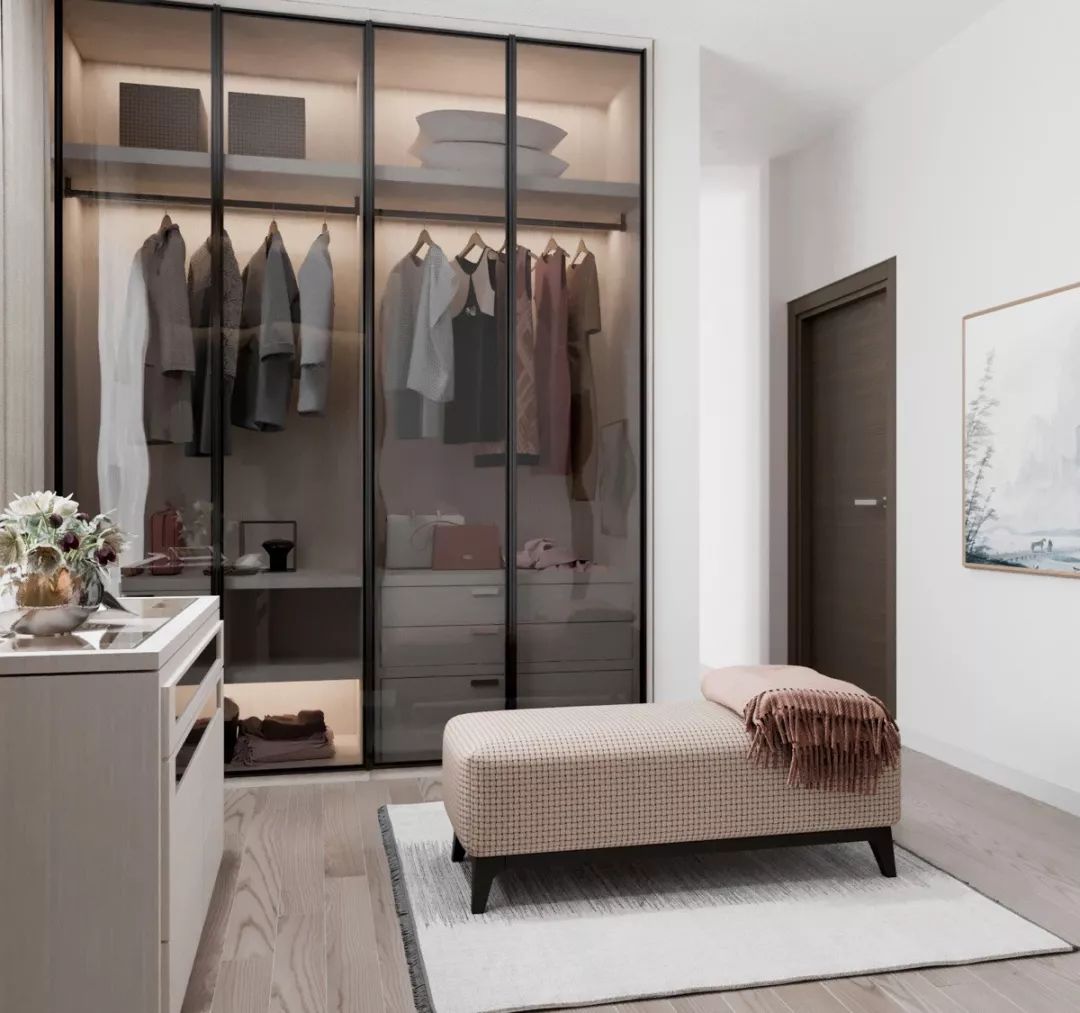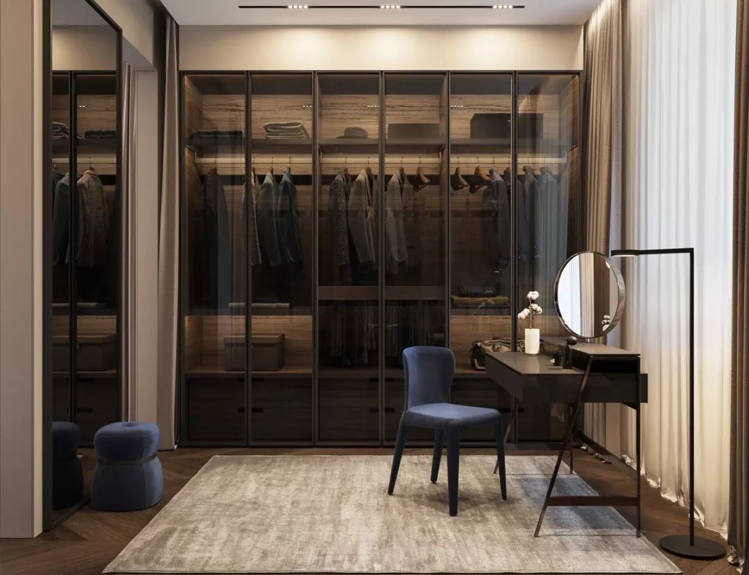 步入式衣柜應(yīng)該盡量選擇密閉性好遠(yuǎn)離衛(wèi)生間和廚房的空間為佳,比如說(shuō)在門廳的角落或者臥室內(nèi)甚至可以單獨(dú)騰出一間。