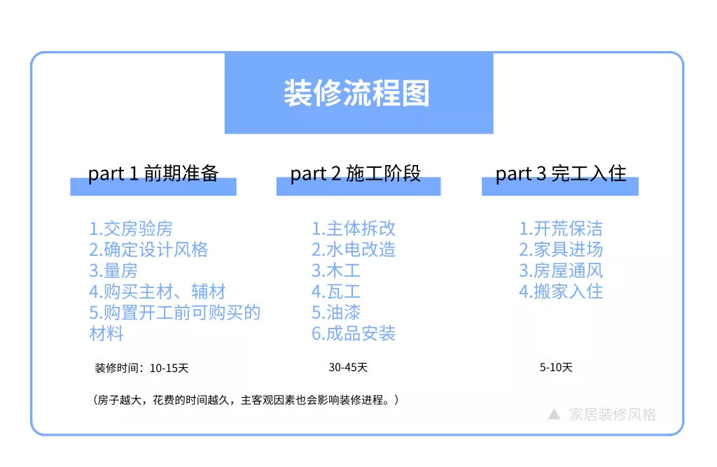 所以,對(duì)于裝修小白來說,熟知裝修流程是很有必要的。今天,糖糖專門整理了一篇新房裝修流程,希望能給大家一個(gè)參考和借鑒,起碼心里有底。