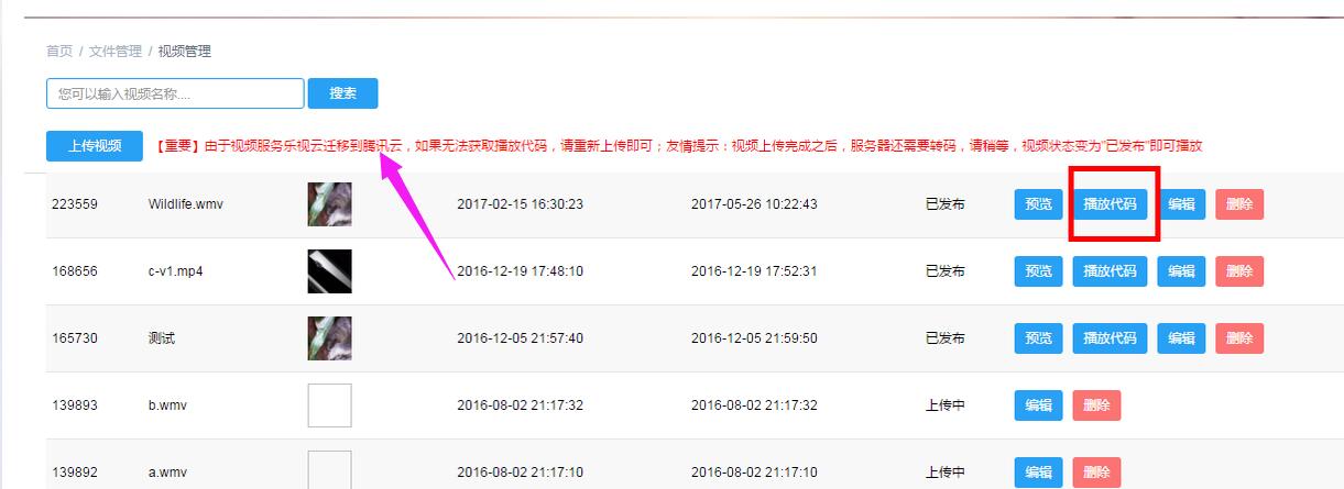 方法一:視頻上傳到這里之后獲得視頻地址