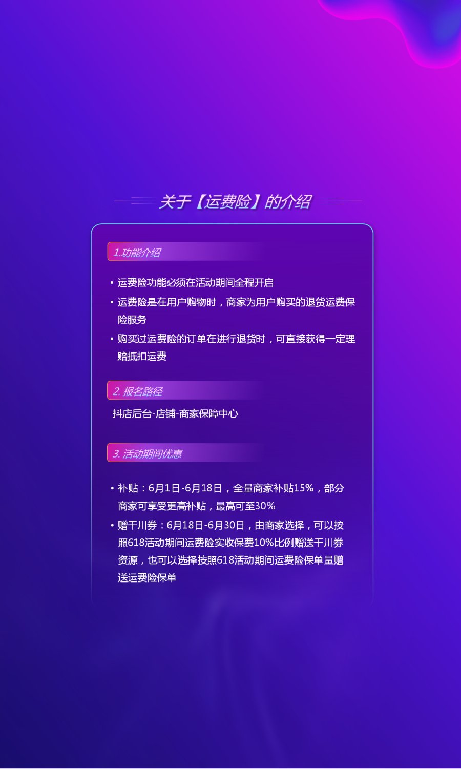 活動(dòng)期間,為避免用戶產(chǎn)生不必要的運(yùn)費(fèi)損失,抖音電商推出了運(yùn)費(fèi)險(xiǎn)服務(wù)供商家使用,購(gòu)買過(guò)運(yùn)費(fèi)險(xiǎn)訂單在進(jìn)行退貨時(shí),用戶可以獲得一定理賠補(bǔ)償。運(yùn)費(fèi)險(xiǎn)不僅可以提升用戶下單轉(zhuǎn)化,還能減少活動(dòng)期間商品退貨運(yùn)費(fèi)糾紛。另外,活動(dòng)期間還推出了極速退功能,這個(gè)服務(wù)可以幫助商家有效提升未發(fā)貨狀態(tài)下訂單的退款速度,縮短消費(fèi)者的等待審核時(shí)長(zhǎng),降低因退款產(chǎn)生的投訴率,提升用戶體驗(yàn)。